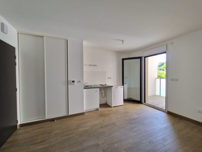 A deux pas du parc de Procé, au 1er étage d'une résidence de standing sécurisée, grand studio agréable à vivre de 26m² comprenant un grand placard d'entrée, une belle pièce de vie avec kitchenette donnant sur un balcon avec vue sur le jardin de la copropriété, une salle d’eau avec WC.