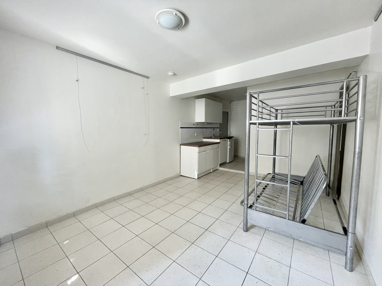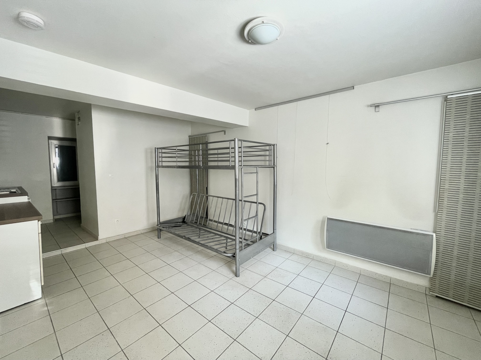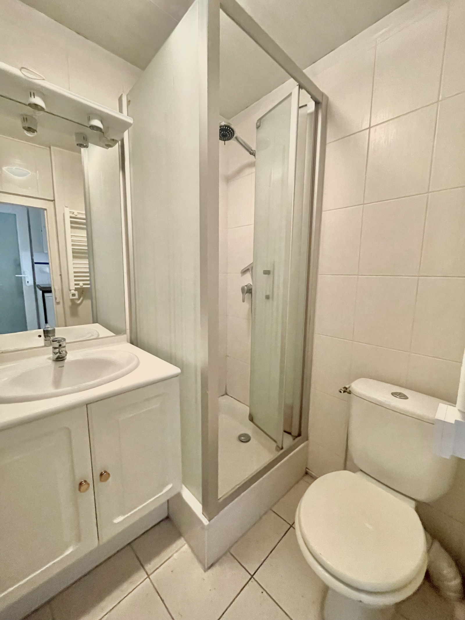 Dans un immeuble sécurisé, studio de 21.41 m² qui comprend une pièce de vie avec cuisine ouverte, aménagée et équipée (meubles hauts et bas, évier, frigo + freezer et plaque à induction), une salle d'eau avec WC et sèche-serviettes.