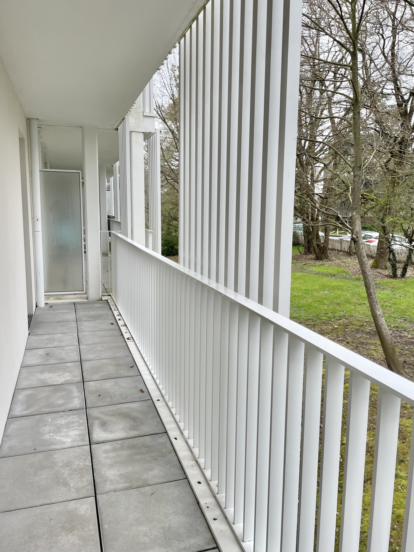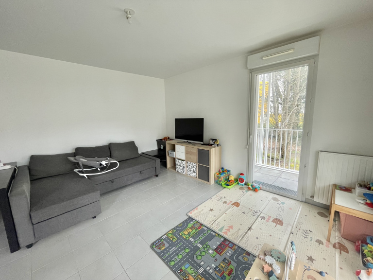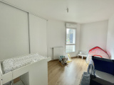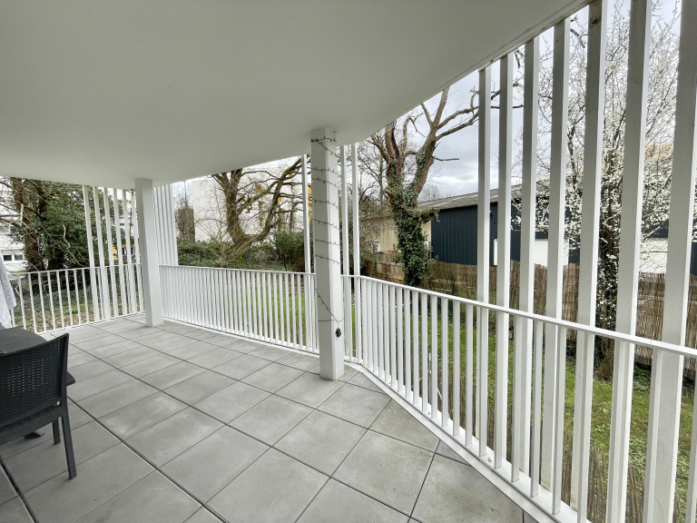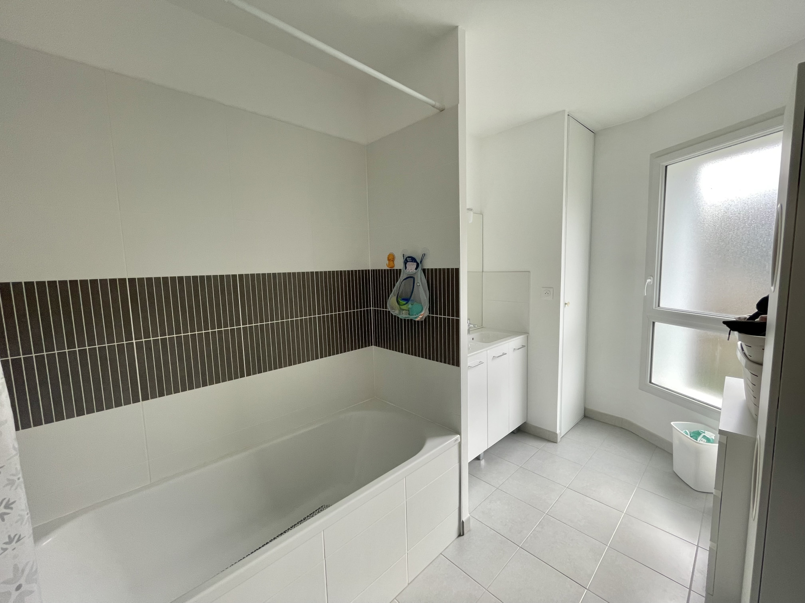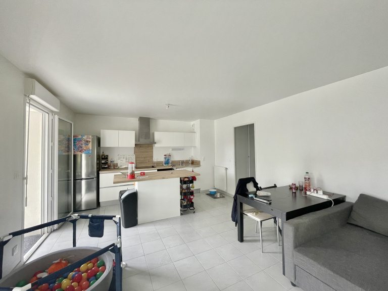 Au 1er étage d'une copropriété récente de 2019 avec ascenseur, un appartement de type T4 comprenant : une entrée avec placard, une belle pièce de vie donnant sur une grande terrasse de 26m² avec cuisine ouverte aménagée et équipée (meubles hauts et bas, îlot central, évier, plaque de cuisson, hotte et four), un cellier, 3 chambres dont une avec placard et une autre avec accès terrasse, une salle de bain avec meuble double vasque et un WC séparé.