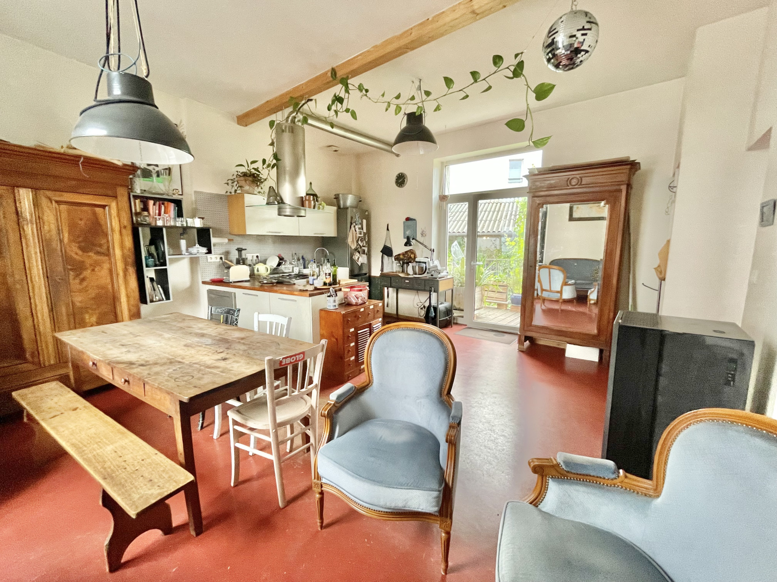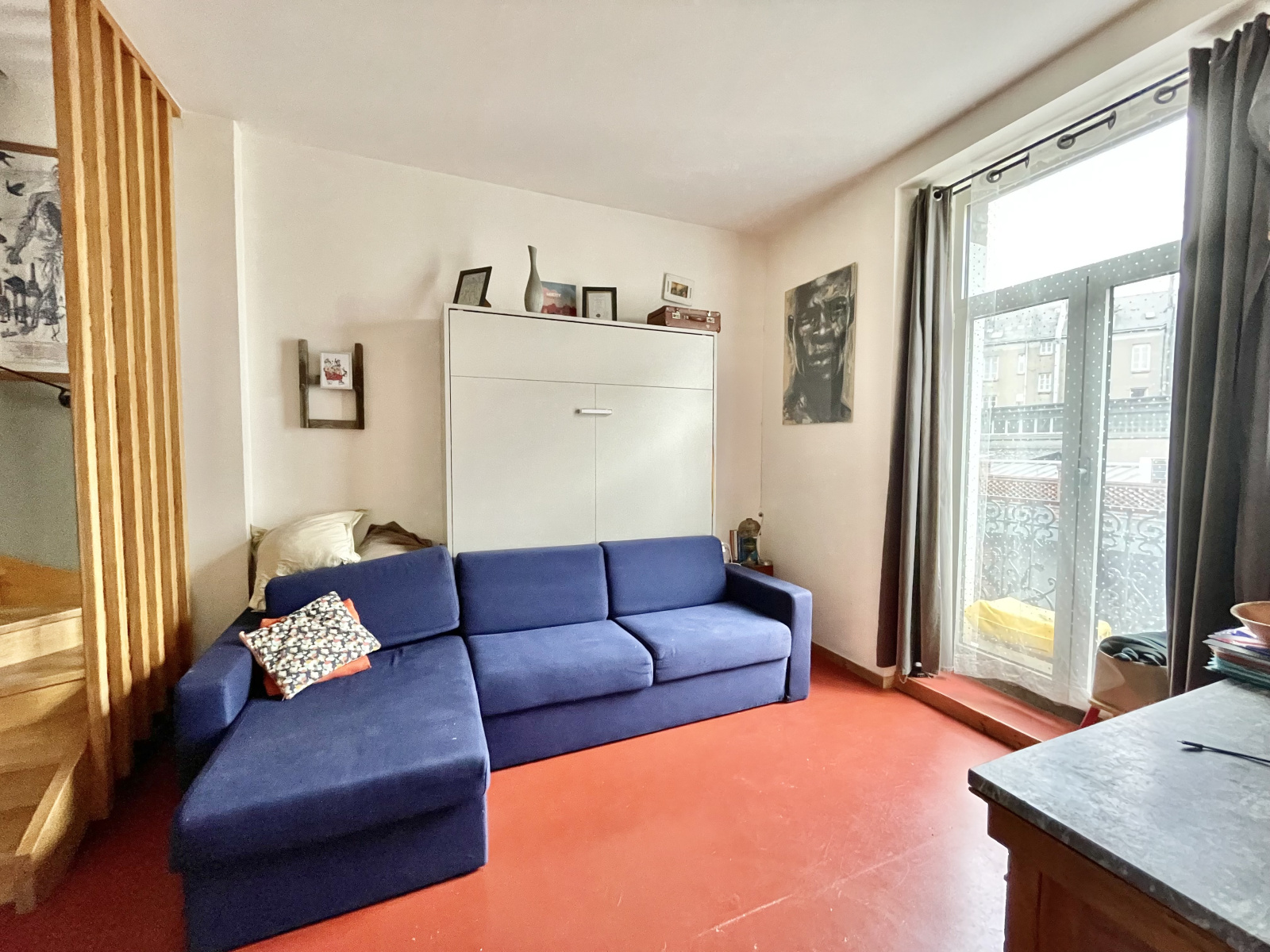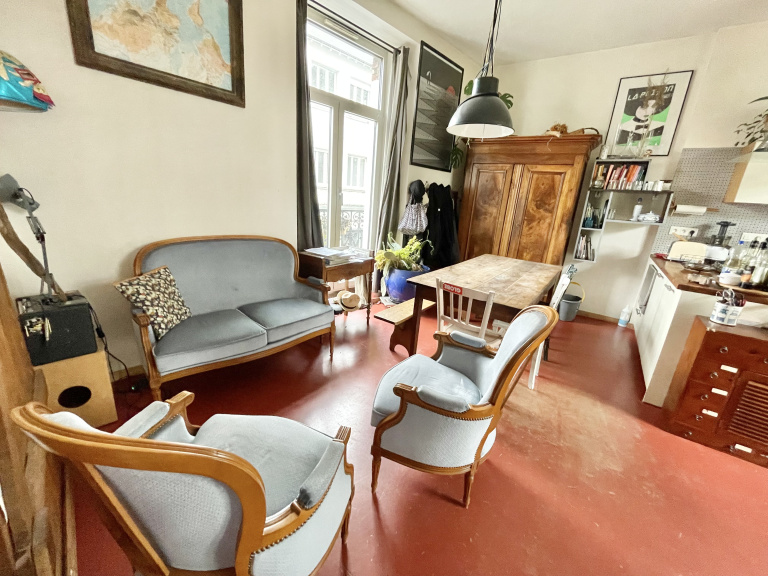 Au premier et dernier étage d'une copropriété de 1900 rénovée en 2013, bel appartement T3 Bis en duplex meublé de 68m² Carrez et 80m² de surface au sol soit une moyenne de 74m² comprenant au rez-de-chaussée, une belle pièce de vie équipée d'un poêle à granulés avec coin salon/salle à manger et cuisine ouverte aménagée et équipée donnant sur une terrasse pour profiter des beaux jours, un second salon pouvant servir de coin nuit grâce à un lit escamotable.