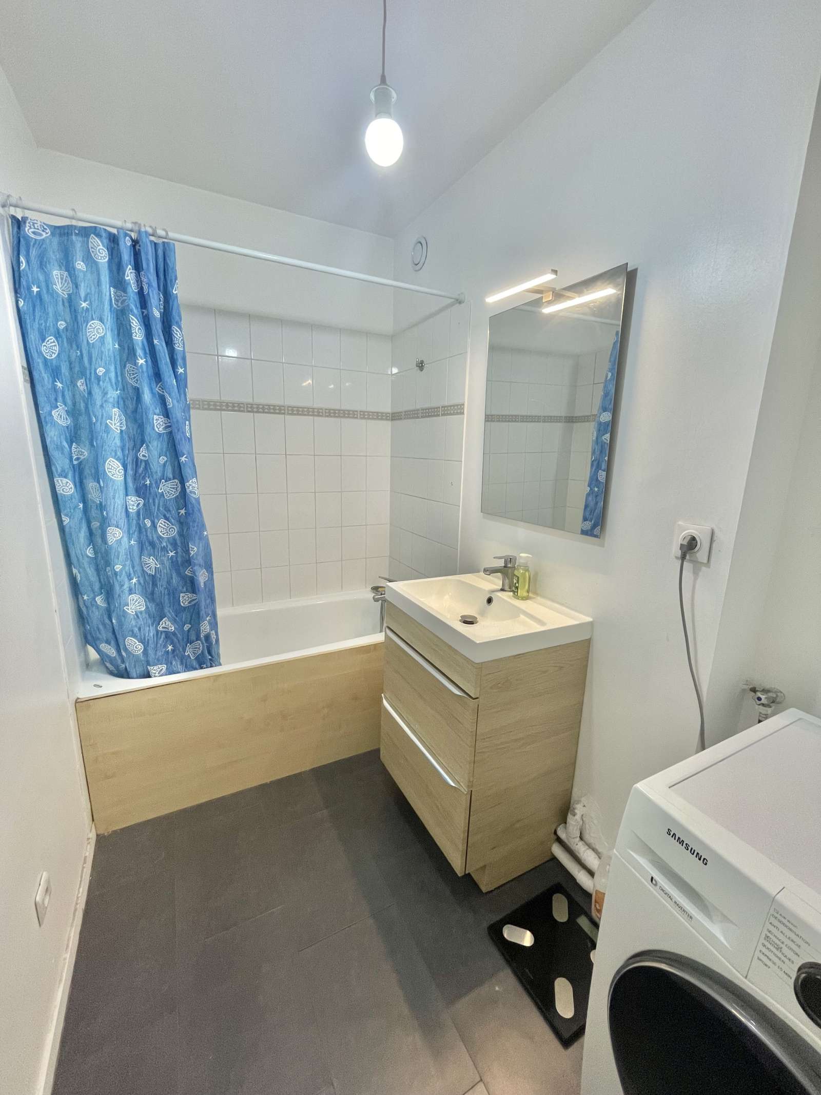 Dans une résidence sécurisée, au 2ème étage avec ascenseur, appartement de Type 2 meublé de 46,68m² comprenant une entrée, une belle pièce de vie de 29m² avec cuisine aménagée et équipée donnant sur un balcon côté cour intérieure de la copropriété, une chambre avec dressing, une salle de bain avec baignoire, sèche-serviettes et lave-linge et WC indépendants.