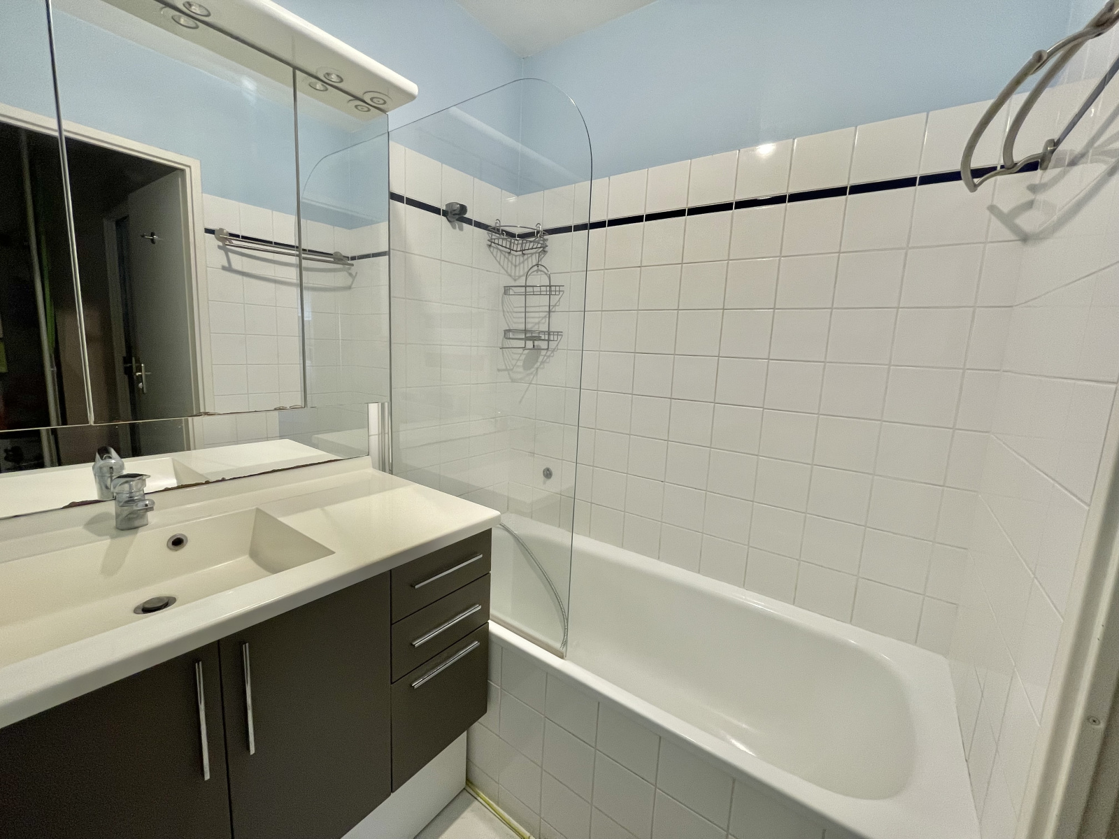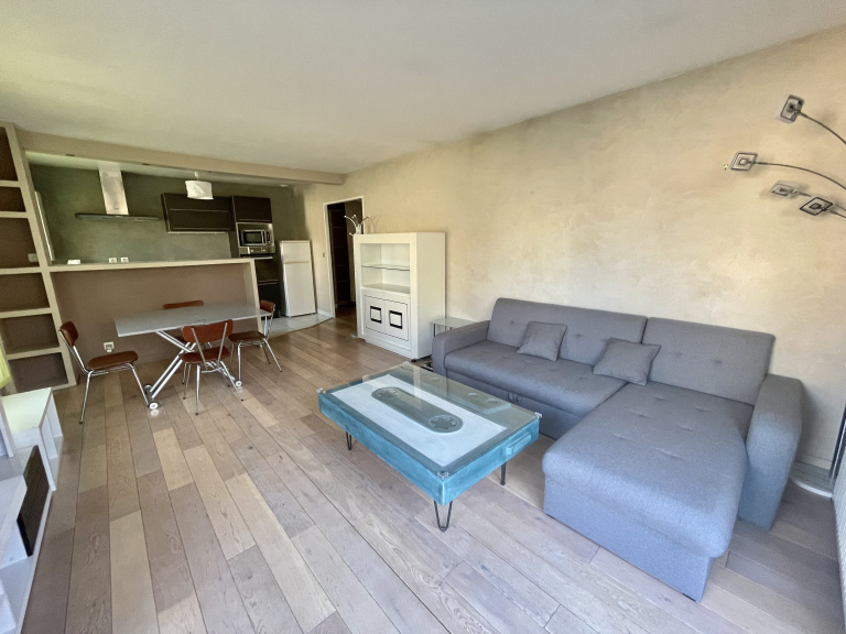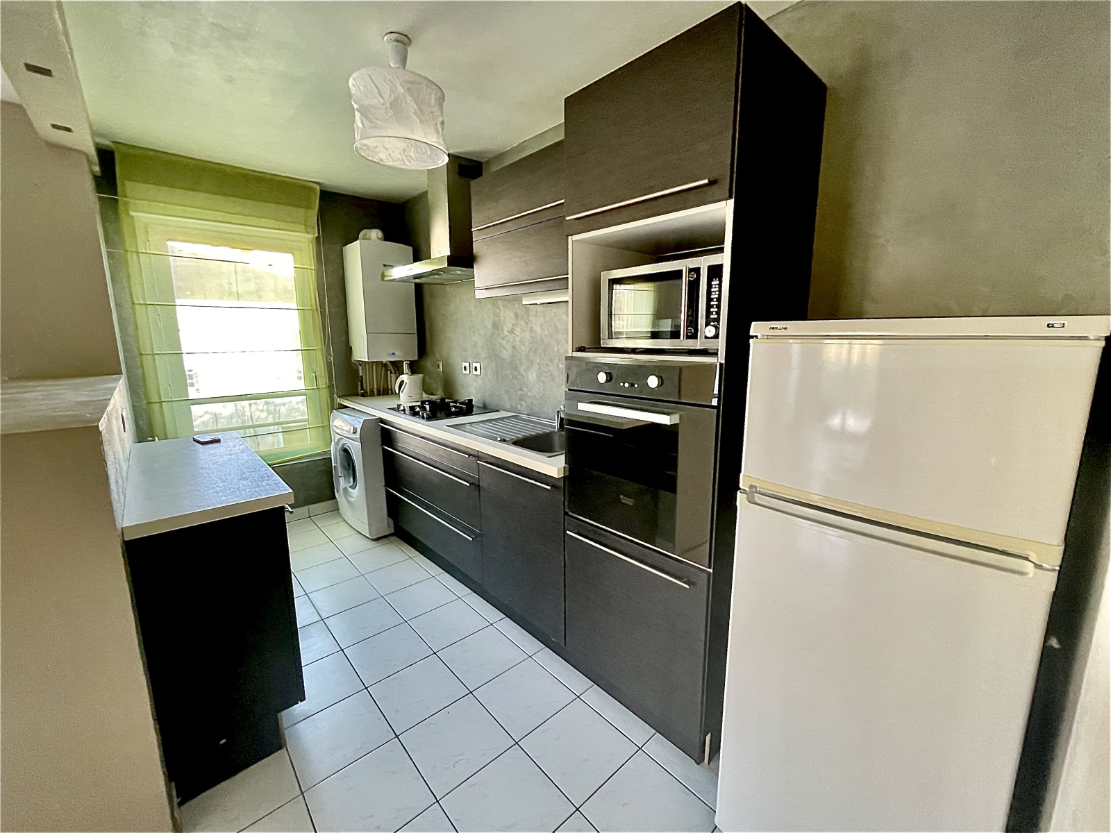 Au premier et dernier étage d'un petit immeuble de 1999, appartement de type 3 meublé de 60,25m² comprenant une entrée avec deux grand placards idéal pour du rangement, une grande pièce de vie de 29m² avec double exposition comprenant un séjour sur parquet donnant un balcon de 8m², une cuisine ouverte aménagée et équipée (réfrigérateur/congélateur, plaque, hotte, four, micro-onde et machine à laver), un dégagement desservant les deux chambres avec placard, une salle de bain avec baignoire, vasque et sèche-serviettes et WC séparés.