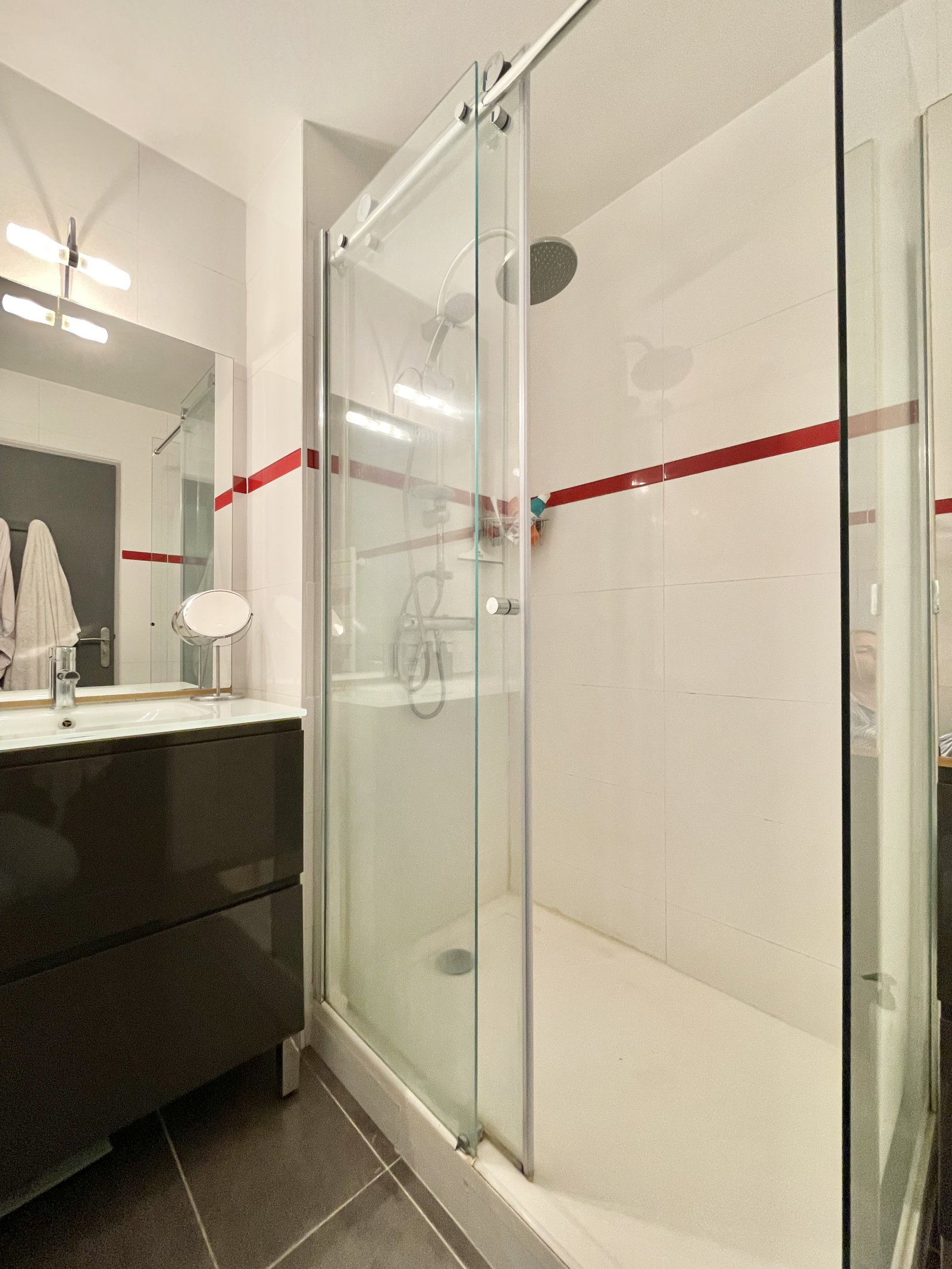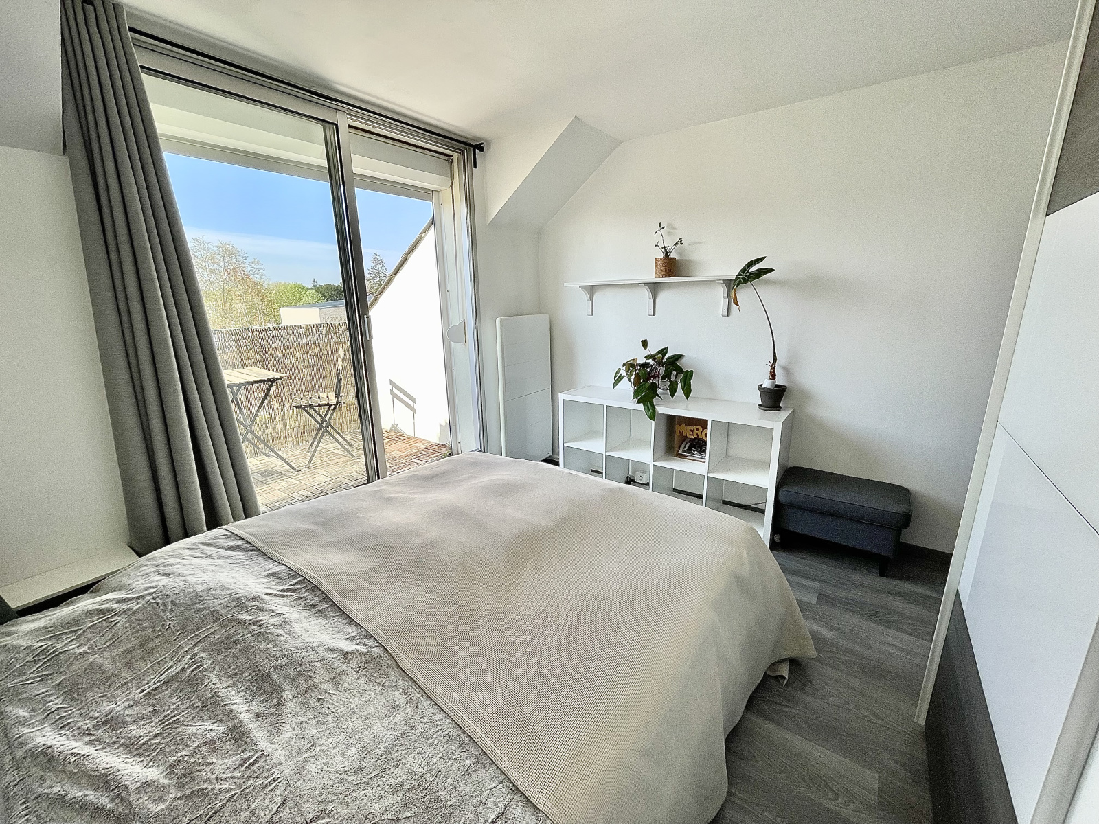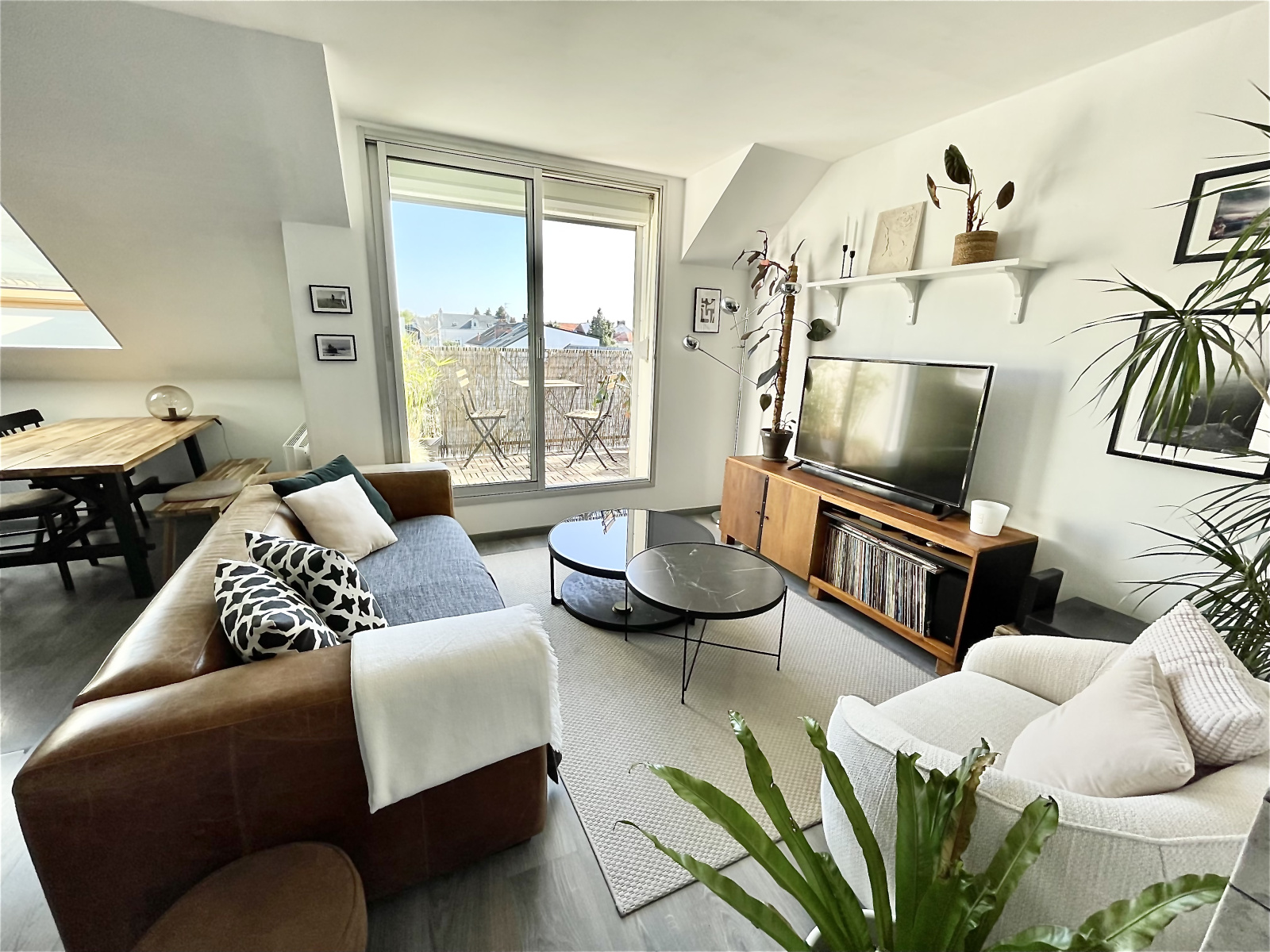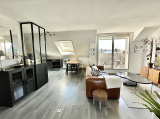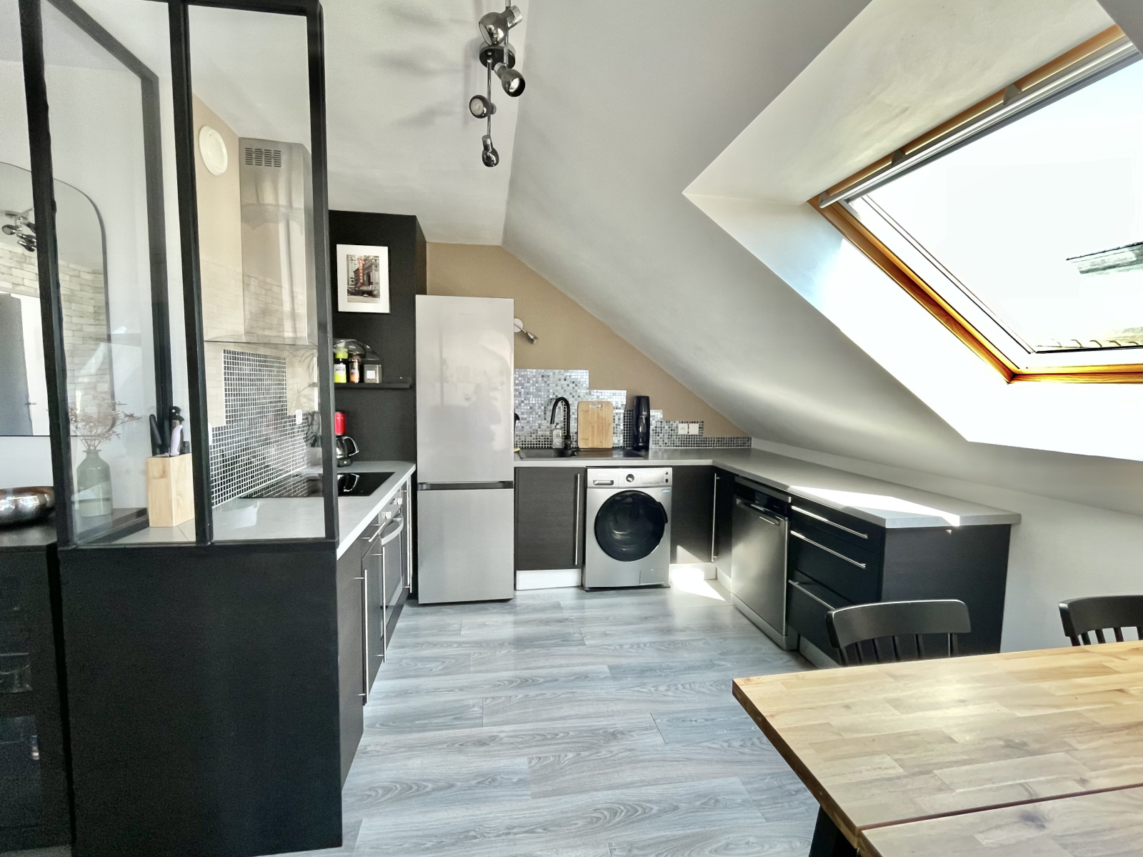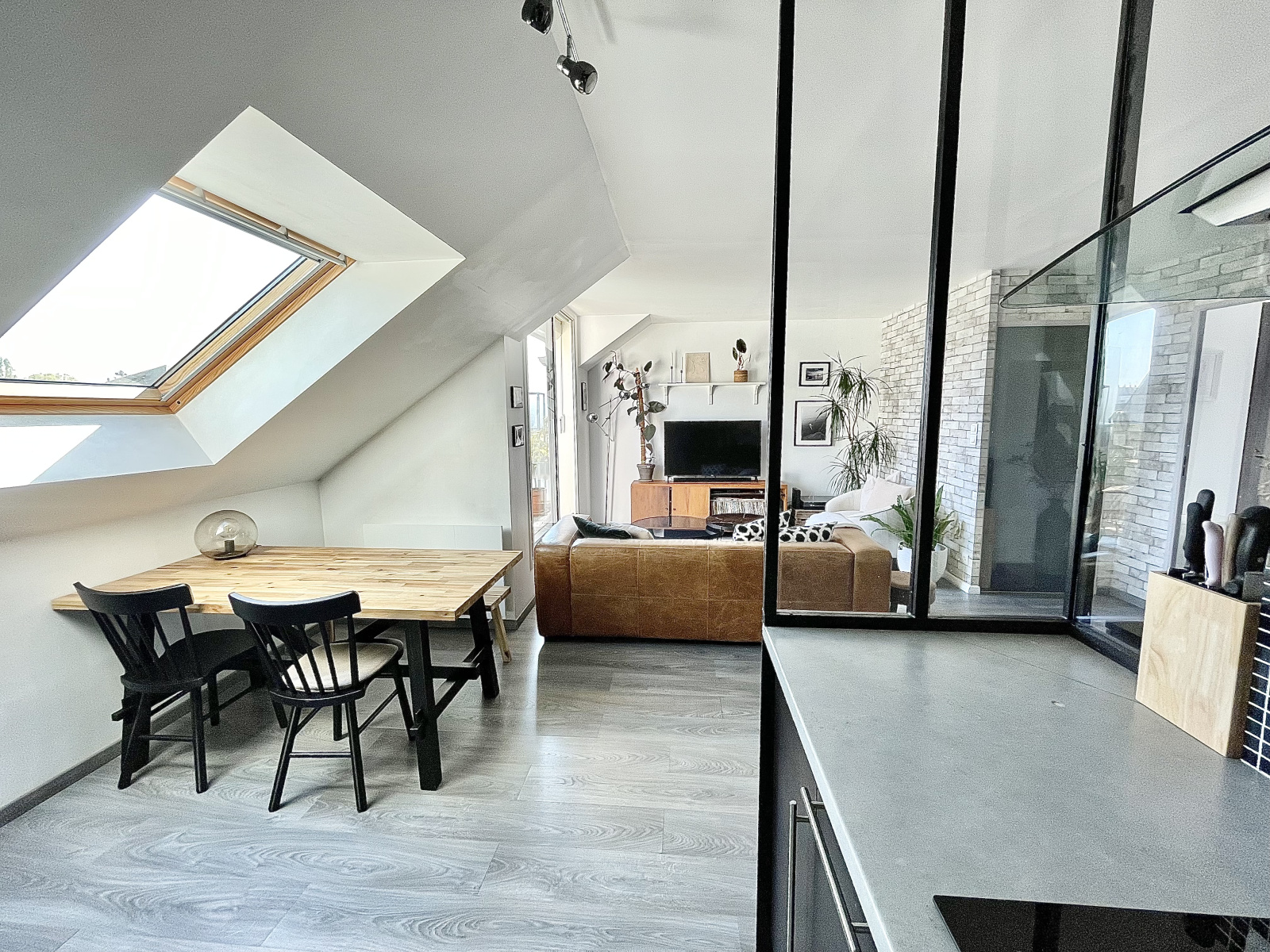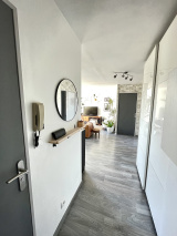 Au calme, au troisième et dernier étage d'une résidence sécurisée en impasse privée, bel appartement de type 3 de 55.77 m² carrez et 63,17m² au sol rénové avec goût comprenant une entrée avec placard, une grande grande pièce de vie lumineuse avec salon donnant accès à un 1er balcon et cuisine ouverte aménagée et équipée d'une plaque de cuisson, four, hotte et lave-vaisselle (arrivée/évacuation d'eau pour machine à laver), deux belles chambres dont une avec dressing et accès à un second balcon, une salle d’eau avec douche, vasque et sèches serviettes et WC séparés.