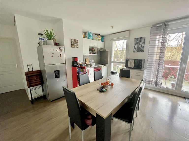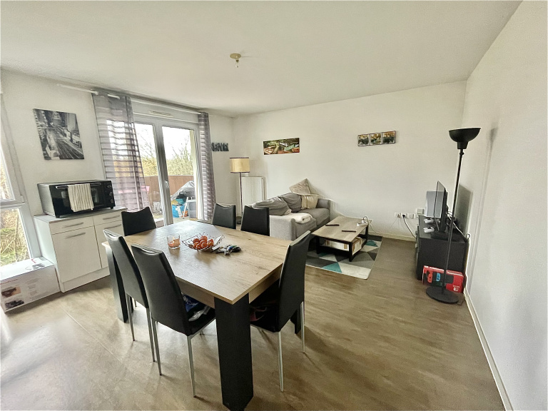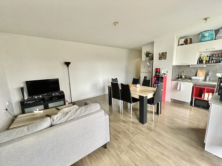 Au calme, dans une résidence sécurisée de 2013, au 1er étage, appartement de type 2 composé d'une entrée, belle pièce de vie de presque 26m² avec cuisine ouverte (plaque de cuisson, hotte, frigo) et placard donnant sur un balcon de 4.75m², une chambre et une salle d'eau avec WC.