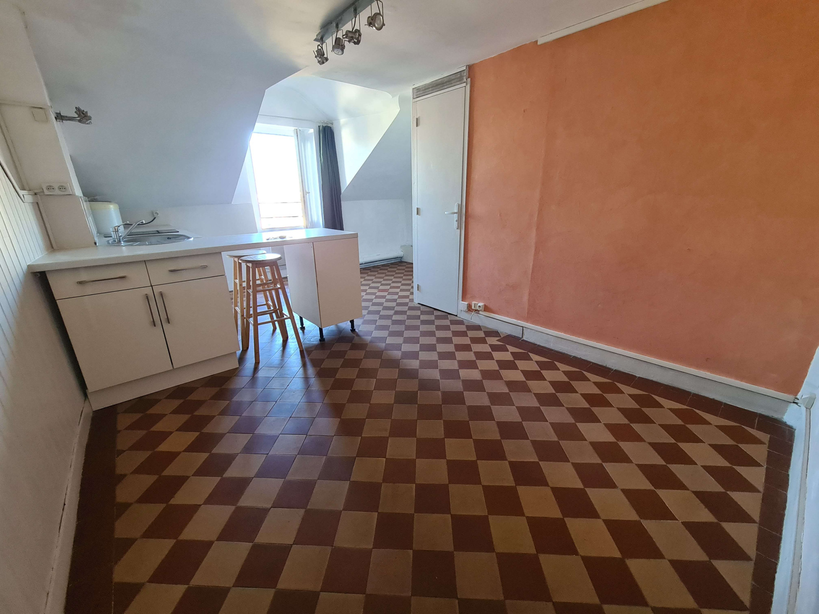 EXCLUSIVITE, Situé rue Maréchal Joffre à NANTES proche du Busway, du tram et des commerces, Idéal pour Etudiant, Studio au 3ieme et dernier étage non meublé sous combles de 20,80m2 au sol et 16.10 Carrez comprenant une pièce principale avec cuisine et salle d'eau avec WC.