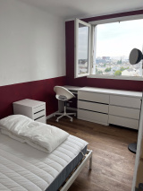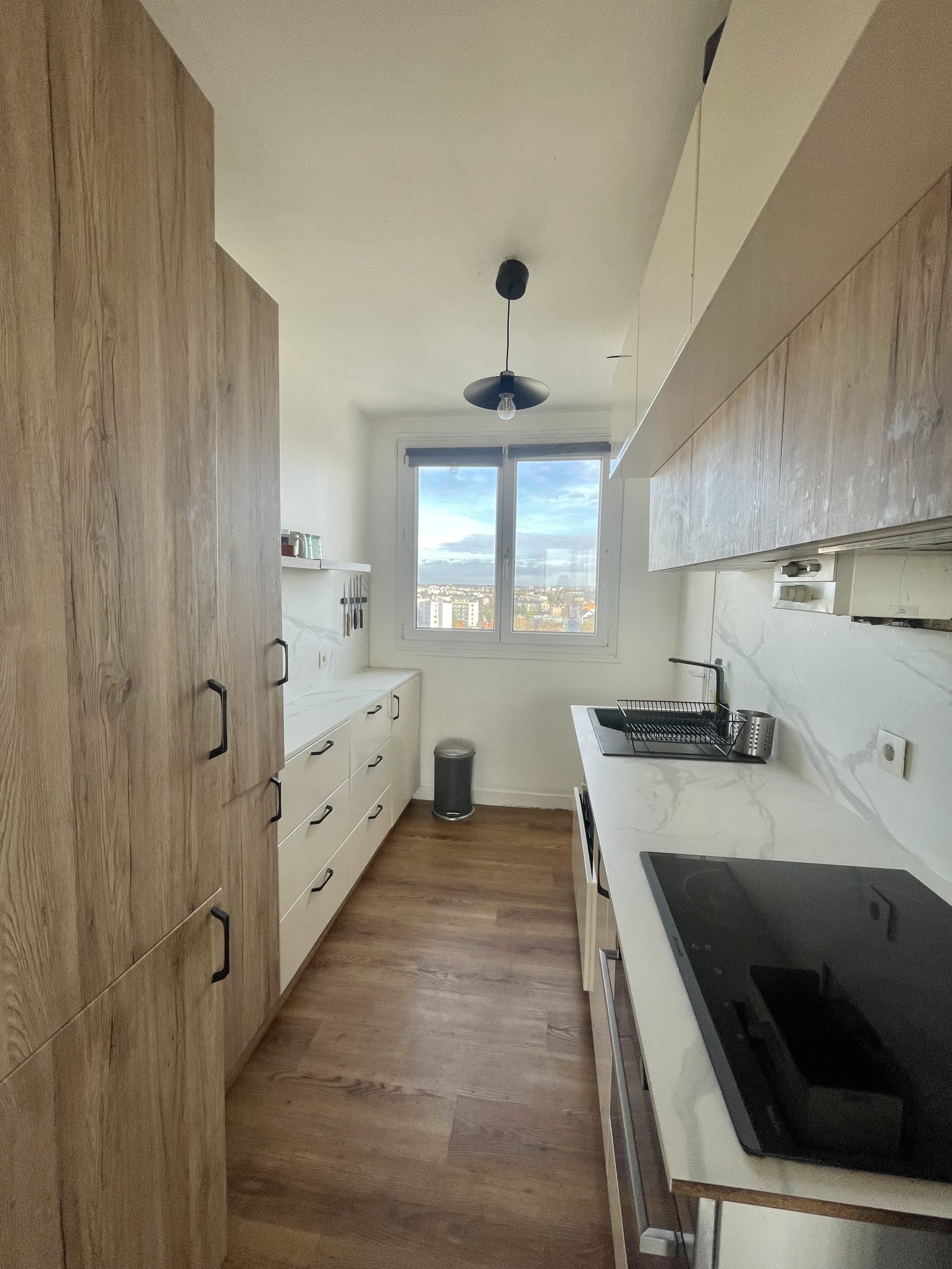 Au 11ème étage avec ascenseur, un appartement de type 4 meublé d'environ 61 m² composé d'une entrée avec placard, une belle pièce de vie avec vue dégagée, cuisine aménagée et équipée (four, micro-onde, plaque de cuisson, hotte et frigo/congélateur), un séchoir, trois chambres et une salle de bain avec WC.