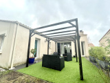 Beau jardin clos avec terrasse. Possibilité de stationner 2 véhicules sur la parcelle.