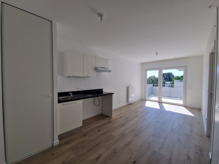 TROP TARD -- DEJA LOUE PAR L'AGENCE !! NOUVEAUTE - Dans le bourg des Sorinières, dans un immeuble neuf de qualité venant d'être livré, appartement Type 2 au deuxième étage avec ascenseur comprenant une entrée avec placard, pièce de vie avec cuisine ( possibilité de mettre lave-vaisselle), balcon avec eau et prise électrique, grande chambre, salle d'eau et WC indépendants. Chauffage individuel Gaz, Volets roulants électriques et domotique.