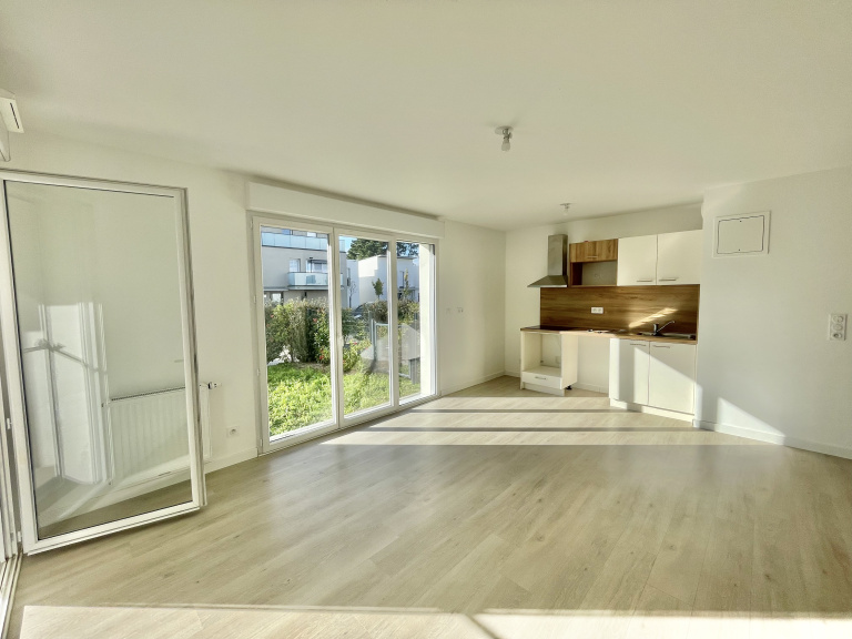TROP TARD -- DEJA LOUE PAR L'AGENCE !!!! LIBRE DE SUITE ! Dans le bourg des Sorinières, dans un immeuble récent de 2022, appartement Type 3 de 60.98m² en rez-de-jardin comprenant une entrée avec placard, pièce de vie lumineuse avec cuisine ouverte (plaque et hotte) donnant sur une loggia et un jardin de 30m², un dégagement dessert deux chambres dont une avec accès loggia, une salle d'eau et WC indépendants. Bon DPE, chauffage individuel Gaz, Volets roulants électriques.