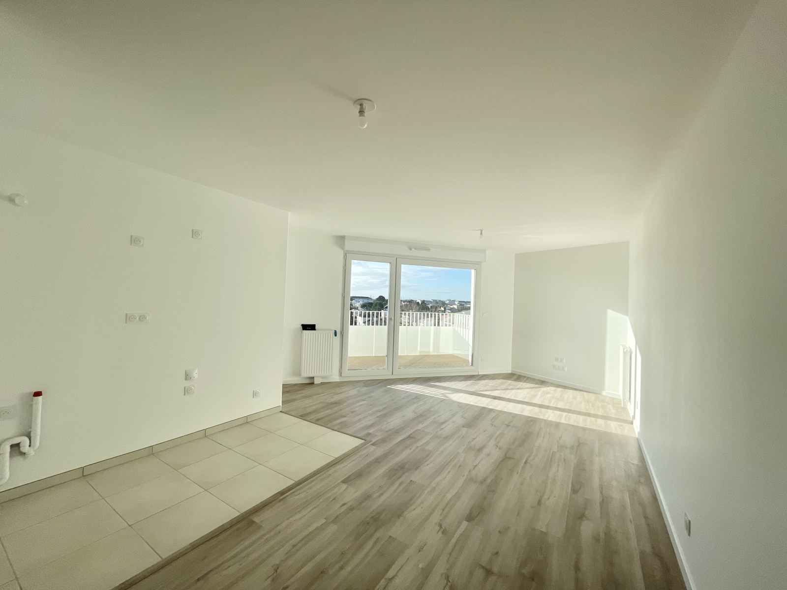 Au 4ème étage d'une résidence neuve sécurisée, appartement de type 3 de 62m² composé d’une entrée avec placard et WC indépendants, d'une grande pièce de vie lumineuse exposée sud avec cuisine *ouverte avec baie vitrée donnant sur un balcon, un couloir desservant deux chambres dont une avec placard et une salle de bain avec baignoire et sèche-serviettes.