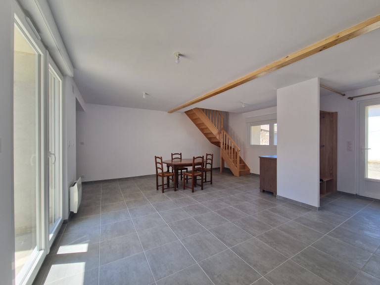 Volets roulants électriques, chauffage électrique, ramassage scolaire devant la maison. LIBRE LE 12/10/2023. La maison sera meublée d'une table avec des chaises, d'un meuble TV, 2 lits etc ...