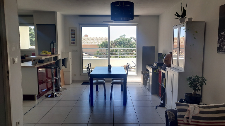 EXCLUSIVITE NANTES SUD, proche des bords de Sevre, du busway et du tram Appartement de type 3 dans un petit immeuble récent avec garage composé d'une entrée avec placard et meuble à chaussure, Belle pièce de vie ensoleillée avec cuisine aménagée et équipée de 32m2 et Terrasse sans vis à vis exposée SUD OUEST, 2 chambres dont une avec balcon et placard, salle d'eau et WC séparés avec lave mains.
