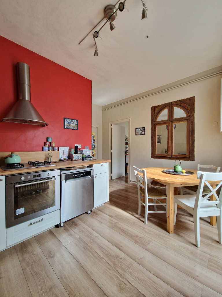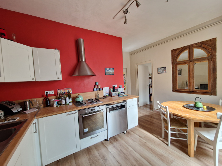 Dans une rue calme, grand type 3 traversant composé d'une entrée, salon-séjour exposé sud-ouest, une cuisine aménagée et équipée séparée par une simple cloison, 2 belles chambres (17.65m2 et 15.46m2), salle de bain et WC indépendants. Confort Gaz - Double vitrage. Beaucoup de rangement en annexe avec deux greniers d’un total de 24m² et deux caves électrifiées (20m2).
