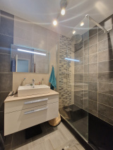 Au troisième étage, bel appartement type 3 entièrement rénové avec matériaux de qualité de 63 m² composé d'une entrée, une cuisine aménagée et équipée, un séjour lumineux sur parquet massif et donnant sur balcon exposé SUD, un couloir avec placards desservant deux chambres, salle d'eau avec grande douche et WC suspendus indépendants. En annexe, une grande cave de 7m2 et un parking couvert et sécurisé. Pas de travaux à prévoir, fenêtres en alu DV et volets roulants électriques.