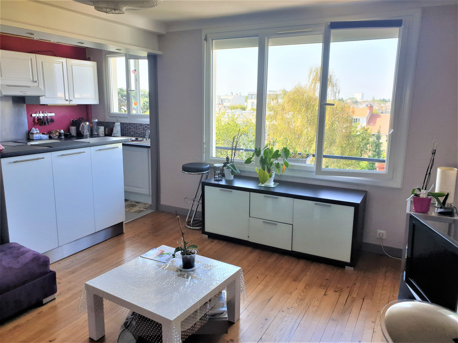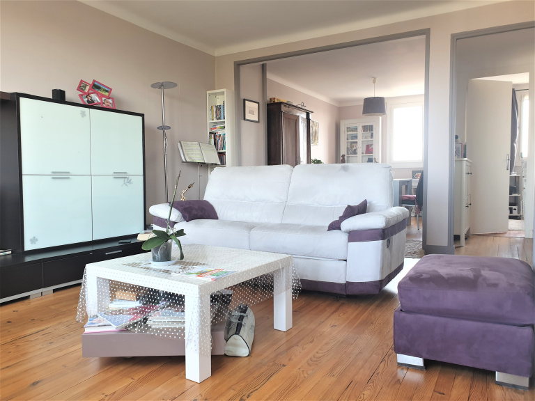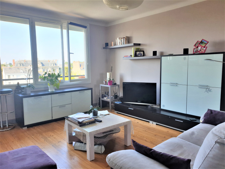 Au calme, proche de la mairie de Chantenay, appartement rénové au 4ième et dernier étage comprenant entrée avec placard, grand salon-séjour traversant sur parquet de 37m2 avec cuisine aménagée et équipée ouverte, 2 chambres possibilité 3, salle d'eau et WC séparés.