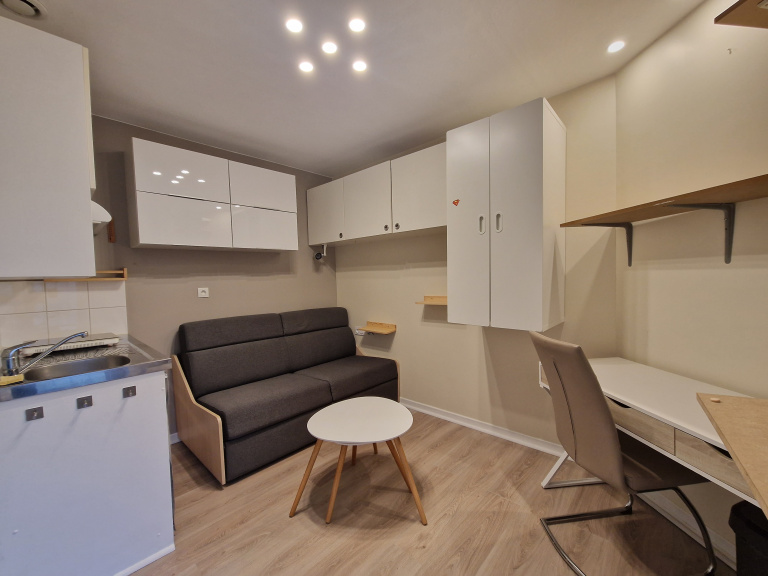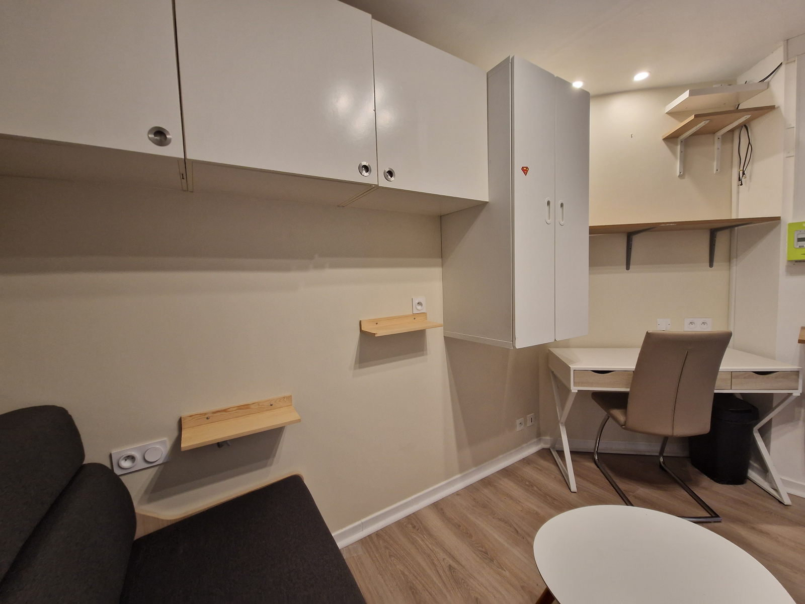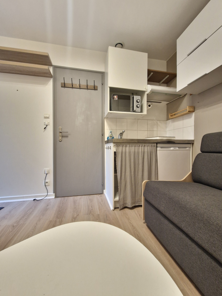 TROP TARD -- DEJA VENDU PAR L'AGENCE !! Quartier Joffre à NANTES - Dans un bel immeuble ancien entièrement restauré, au calme côté cour, studio rénové de 11.39m² vendu meublé et comprenant une pièce de vie avec coin cuisine (réfrigérateur, hotte, plaque de cuisson), un espace bureau et une salle d'eau avec WC. UNIQUEMENT pour pied à terre, cet appartement ne peut pas être loué!