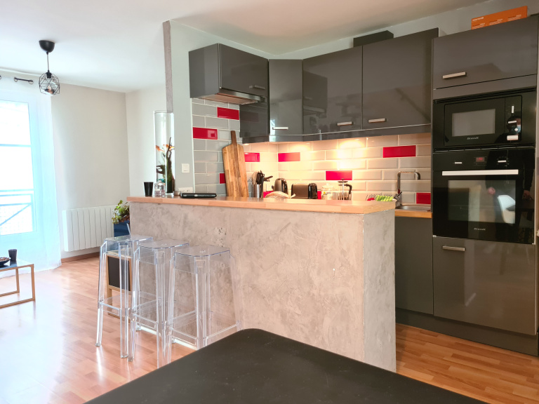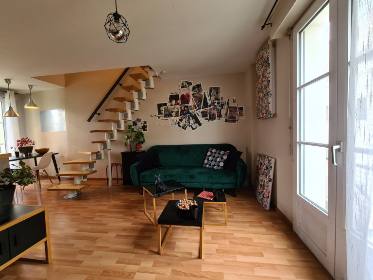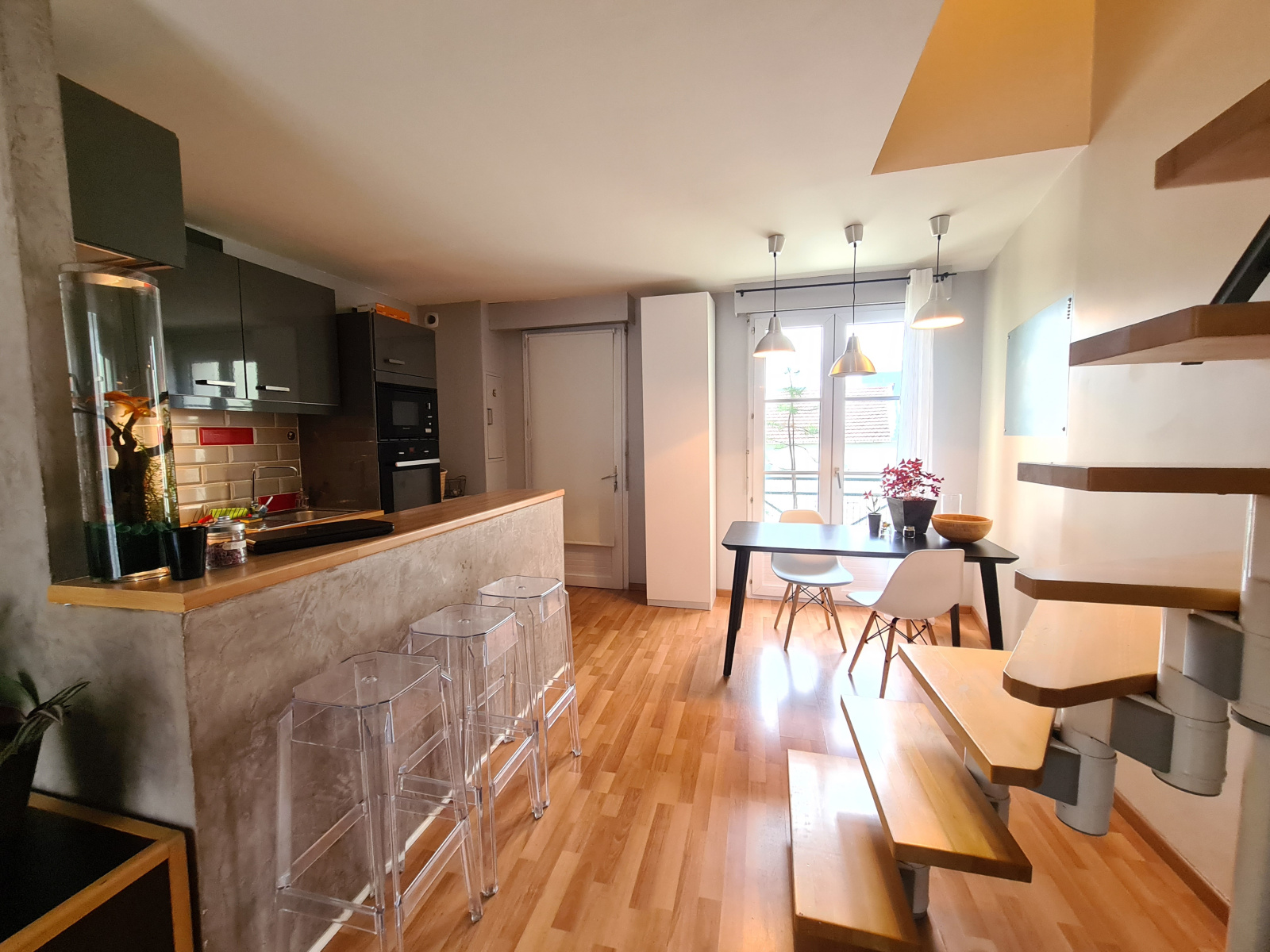 EXCLUSIVITE, Dans une petite copropriété entretenue, au deuxième et dernier étage, charmant type 2 en duplex, 45m2 au sol, 36m2 Carrez, composé d'une belle pièce de vie lumineuse et traversante avec portes fenetres et cuisine entierement aménagée et équipée, à l'étage, palier avec placard, une chambre avec Vélux neuf et salle d'eau.