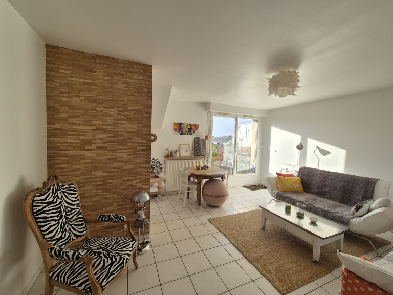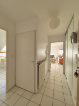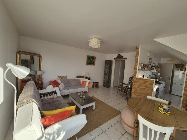 RARE, au 4ème étage et dernier étage d'une résidence bien entretenue de 2001 avec ascenseur, bel appartement de type 3 de 59,32m² carrez et 72.34m² au sol soit une surface moyenne de 65.83m² comprenant une entrée avec placard desservant une belle pièce de vie lumineuse donnant sur une terrasse exposée Ouest de 6,13m² et cuisine ouverte attenante, deux chambres sur parquet dont une avec placard, une salle de bain avec baignoire, vasque et sèche-serviettes et des WC indépendants.