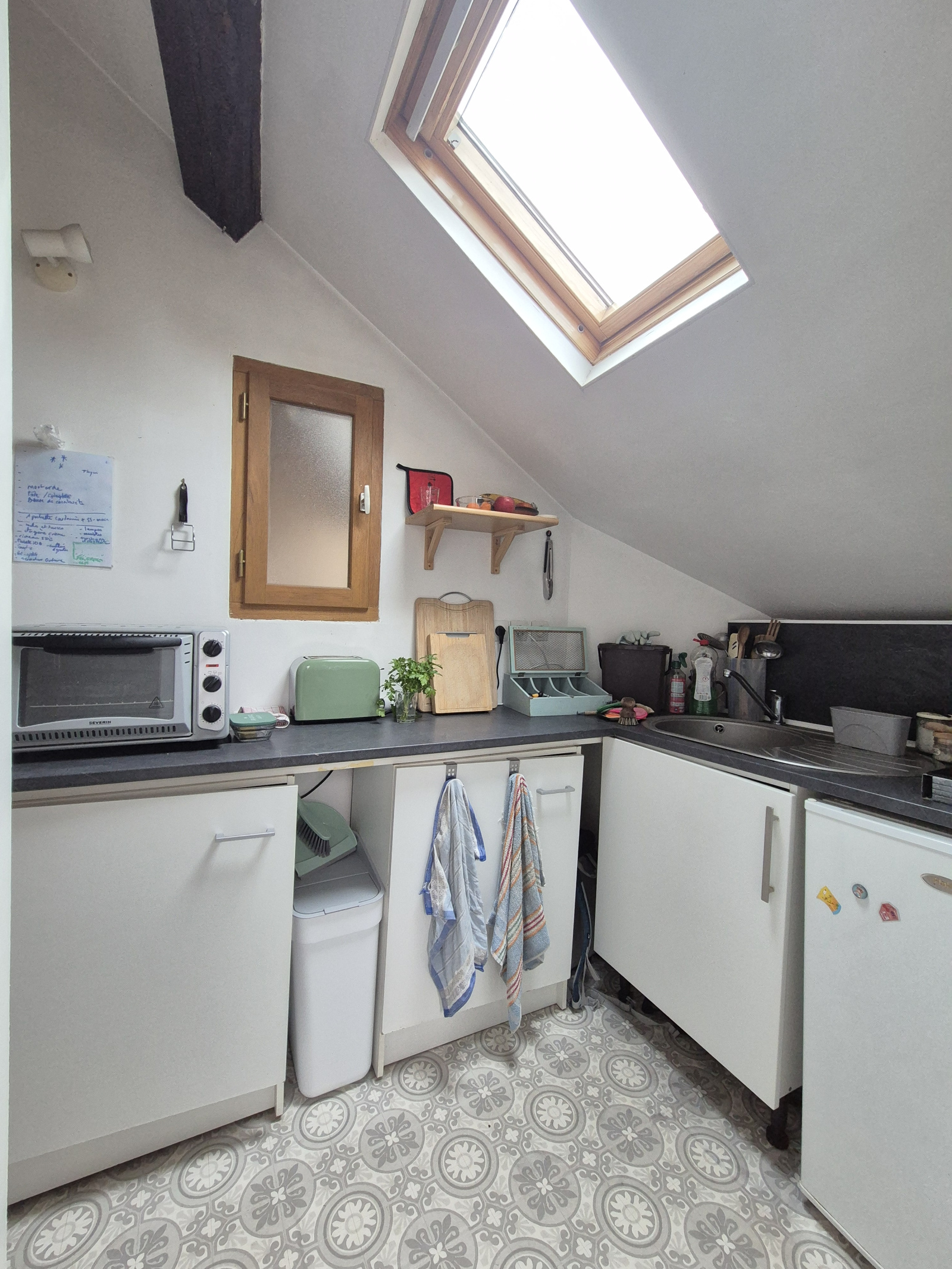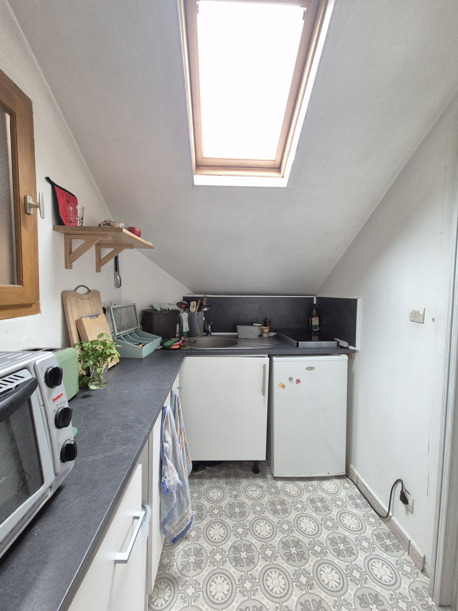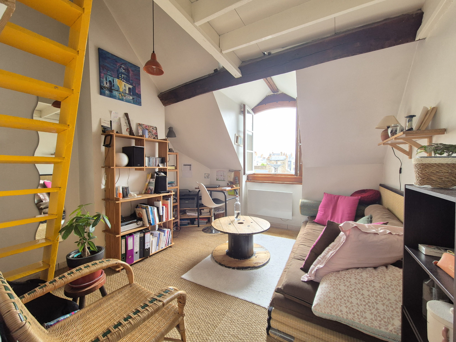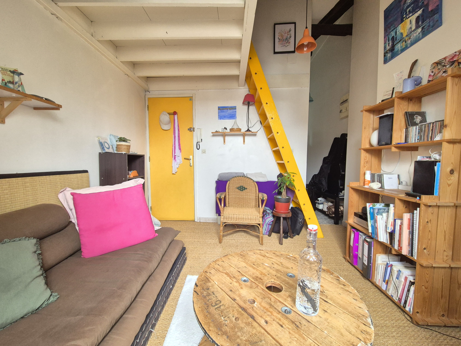 Appartement situé au 4ème et dernier étage d'un bel immeuble ancien composé d'une pièce principale avec coin nuit en Mezzanine, une cuisine et salle d'eau avec WC. Surface de 20.42m² au sol (16.01 Carrez).