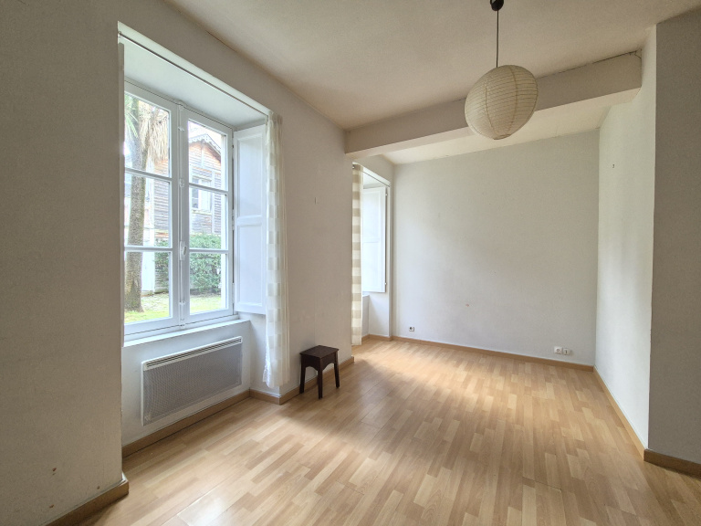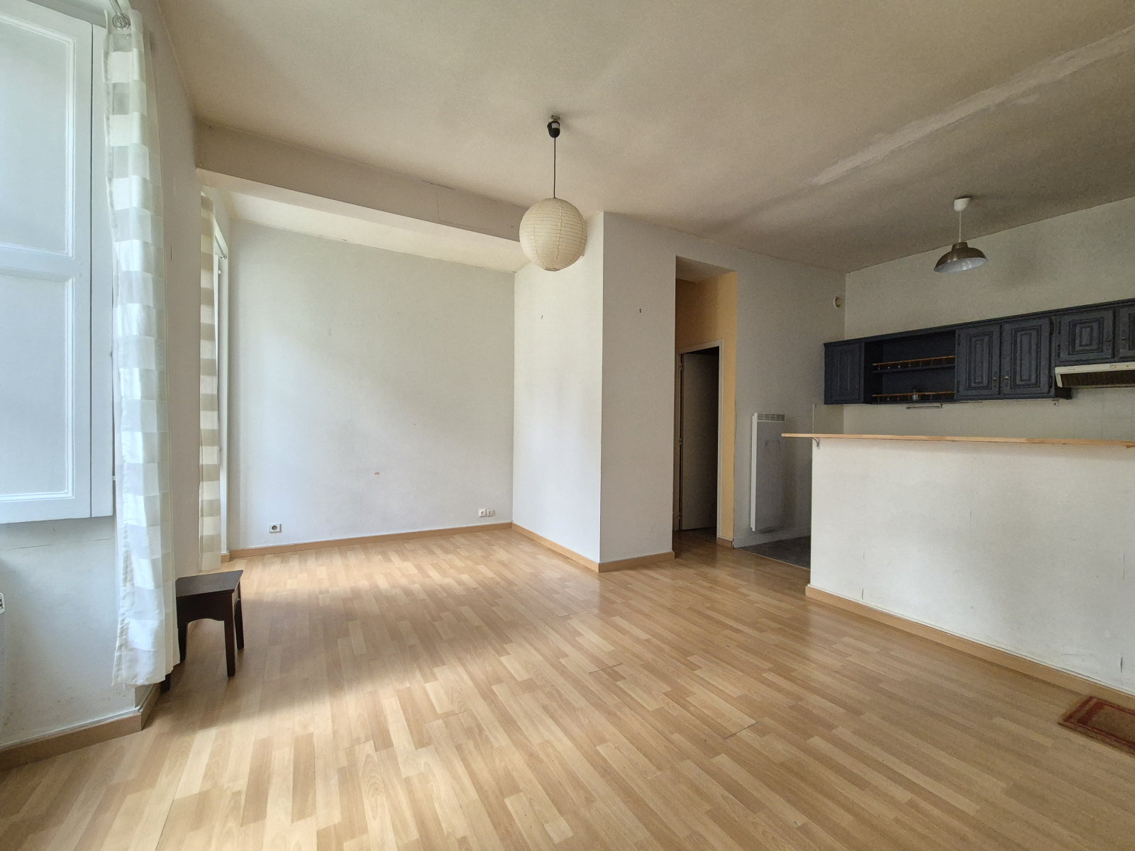 Au calme, Appartement de type 2 de 45m² donnant sur la cour d'un bel immeuble ancien comprenant une grande pièce de vie avec cuisine ouverte, un dégagement avec placard desservant une chambre de 10,50m², une salle de bain et WC séparés.
