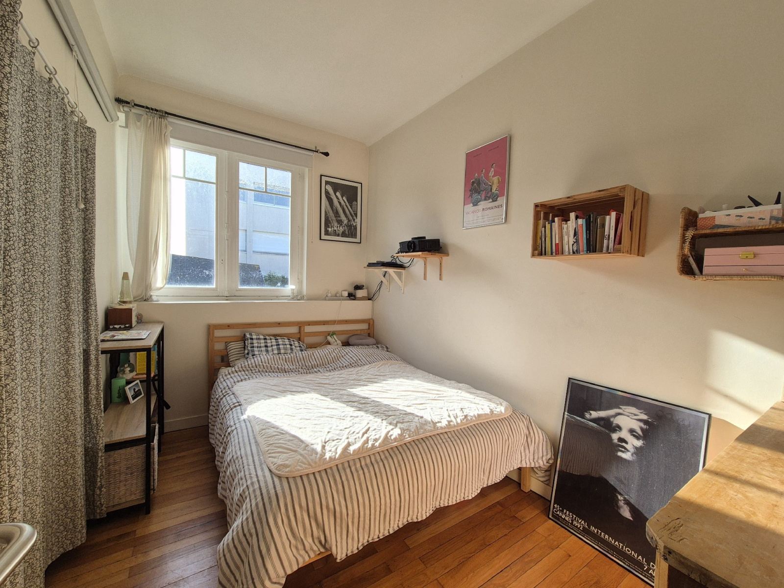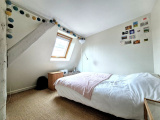 A l'étage, un palier dessert une chambre lumineuse et une salle d'eau.