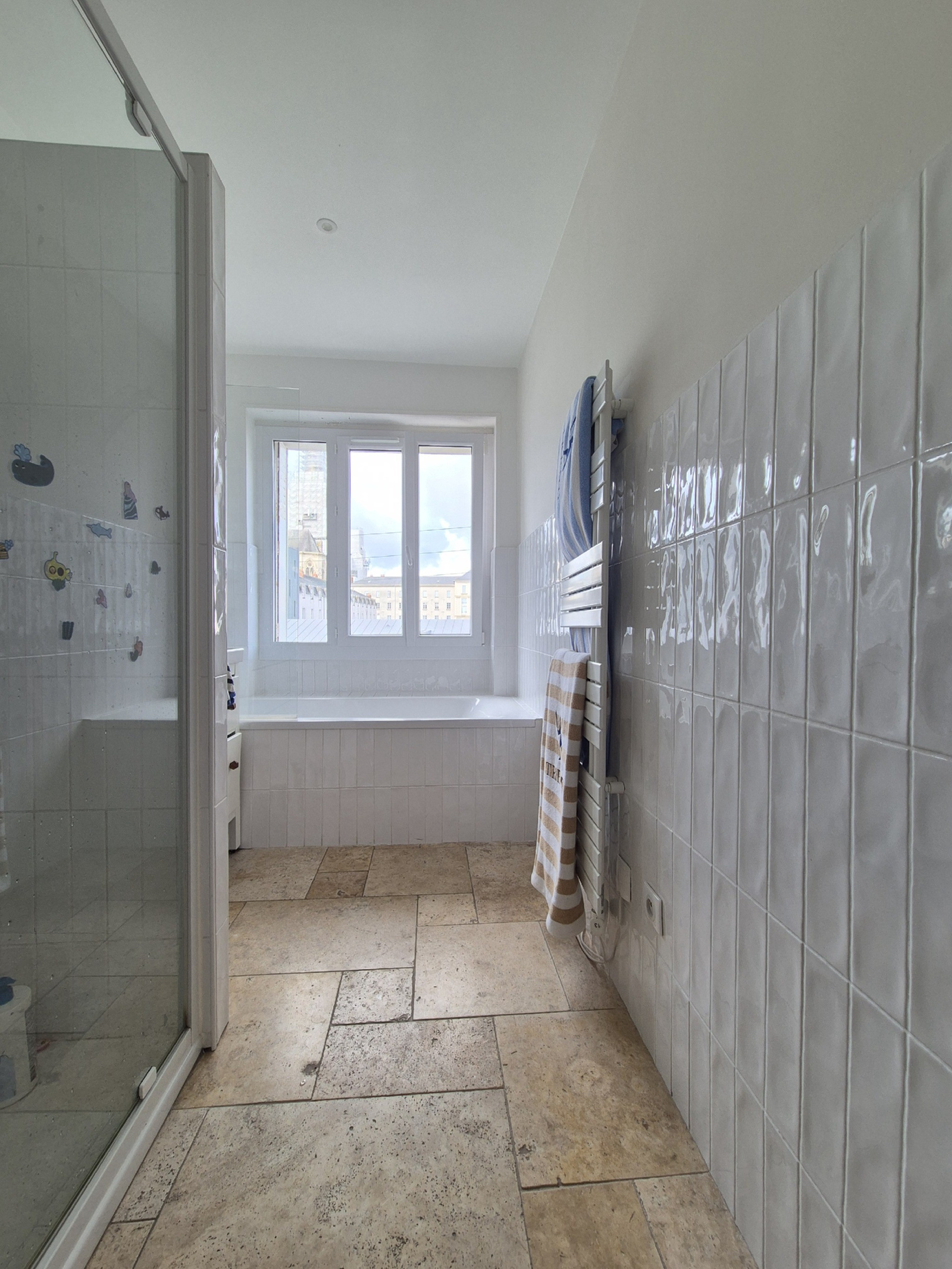 Au 2ème étage d' un petit immeuble de 8 appartements avec ascenseur, charmant appartement de type 5 de 128,65.m² entièrement rénové il y a 5 ans avec goût et des matériaux de qualité : pierre de travertin, paquet massif...