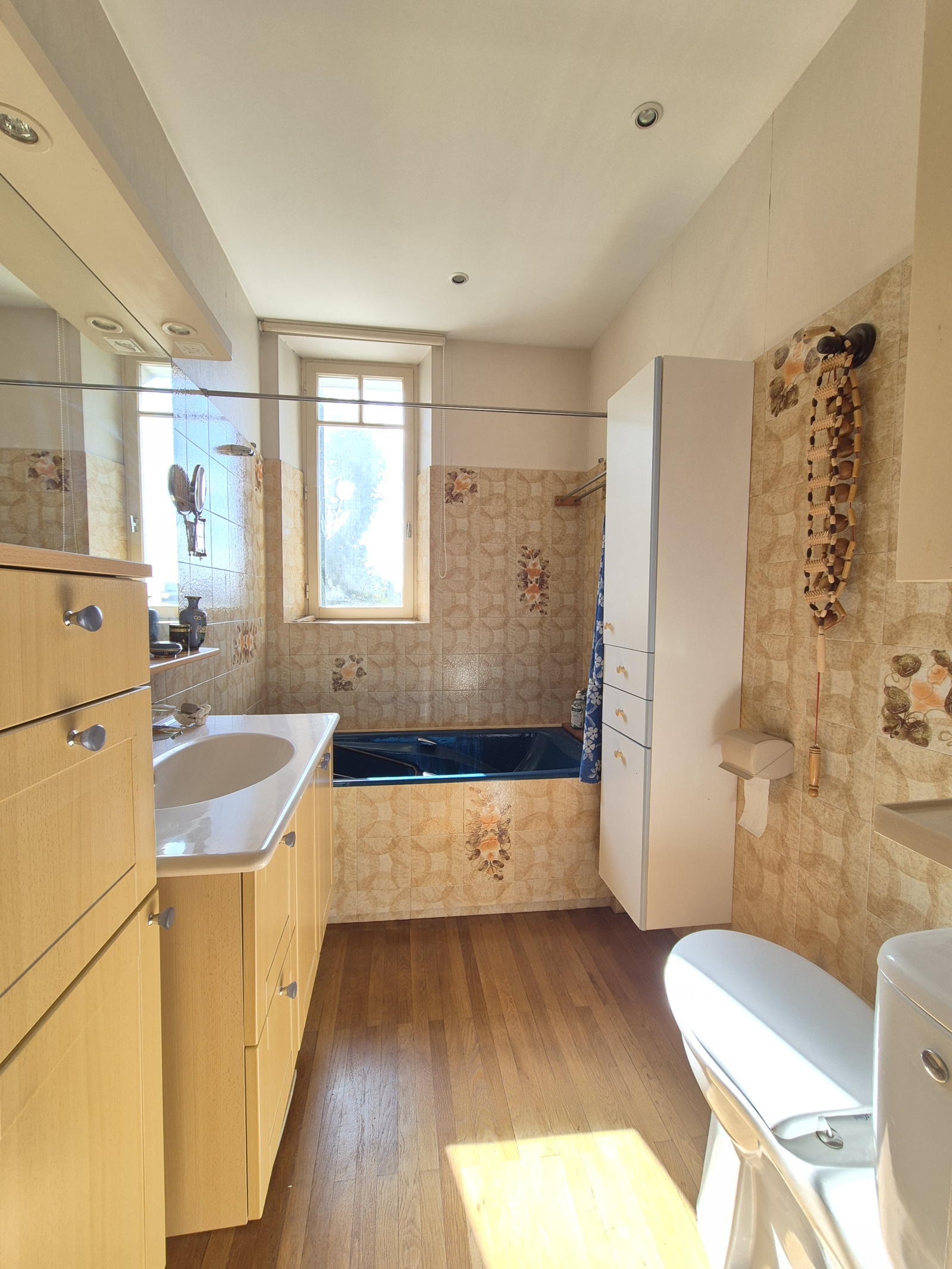 Maison des années 30 de 96.33m² carrez et 117m2 au sol soit une moyenne de 107 m² au sol comprenant au rez-de-chaussée une entrée, un salon-séjour avec cheminée et belle hauteur sous plafond, une cuisine aménagée et équipée, une salle d'eau avec WC. A l’étage, un palier, 2 chambres de presque 12m² et salle de bain avec WC. Au dernière étage, Une grande chambre de 10m² carrez et 32m² au sol.