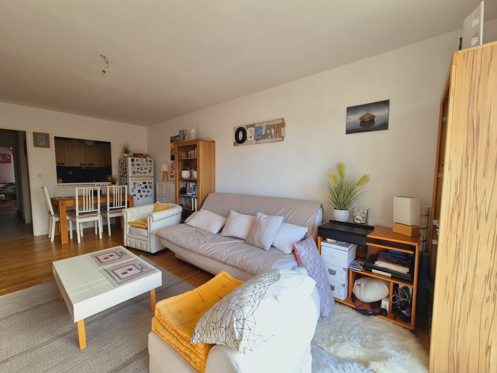LA BAULE ! Idéalement situé à seulement 200m de la gare et 400m de l'avenue de Gaulle. Bel Appartement de type 2 au 3ème étage d'une résidence de Standing. Il se compose d'une entrée, salon-séjour sur parquet massif avec cuisine semi-ouverte et donnant sur une belle terrasse exposée sud et vue dégagée, grande chambre de 12m2 avec placard et terrasse, salle de bain et WC séparés.
