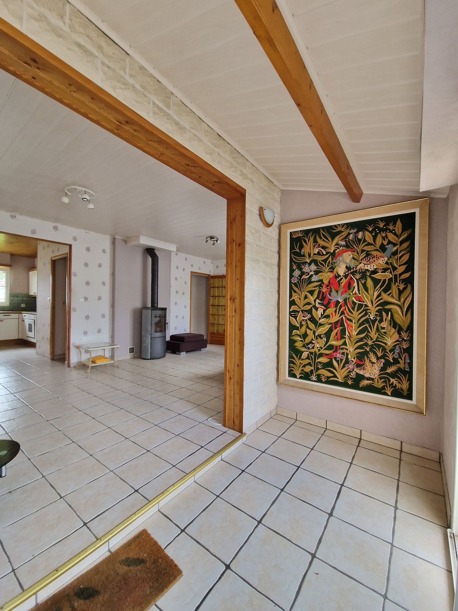 Dans le bourg de BASSE-GOULAINE, proche du C9 permettant de rejoindre le tram de Pirmil et à 13min en voiture de la gare de NANTES, sur une parcelle de presque 1000m², maison de plain-pied de 107m² composée d'une entrée, d'une grande pièce de vie équipée d'un poêle à bois avec cuisine ouverte aménagée et équipé, une salle à manger, trois chambres dont une avec grand placard, une salle d'eau et WC indépendant.