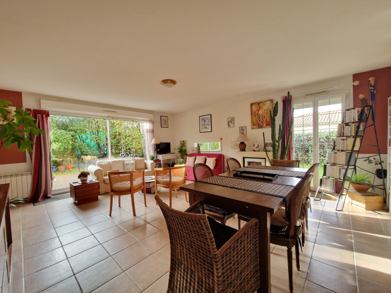 Idéalement située, au calme, en retrait de la rue et pourtant à deux pas des commerces, écoles et transports (Busway à 5 minutes à pied pour rejoindre le centre de NANTES et la gare SNCF), maison non mitoyenne de plain-pied de 2008 composée d' une entrée, un beau salon-séjour lumineux exposé Sud-Ouest avec accès terrasse et jardin, cuisine aménagée, grande arrière cuisine avec possibilité de créer un bureau,3 chambres dont 2 avec placard, salle d’eau et WC indépendants. Un agencement optimisé dans un cadre joliment fleuri et arboré.