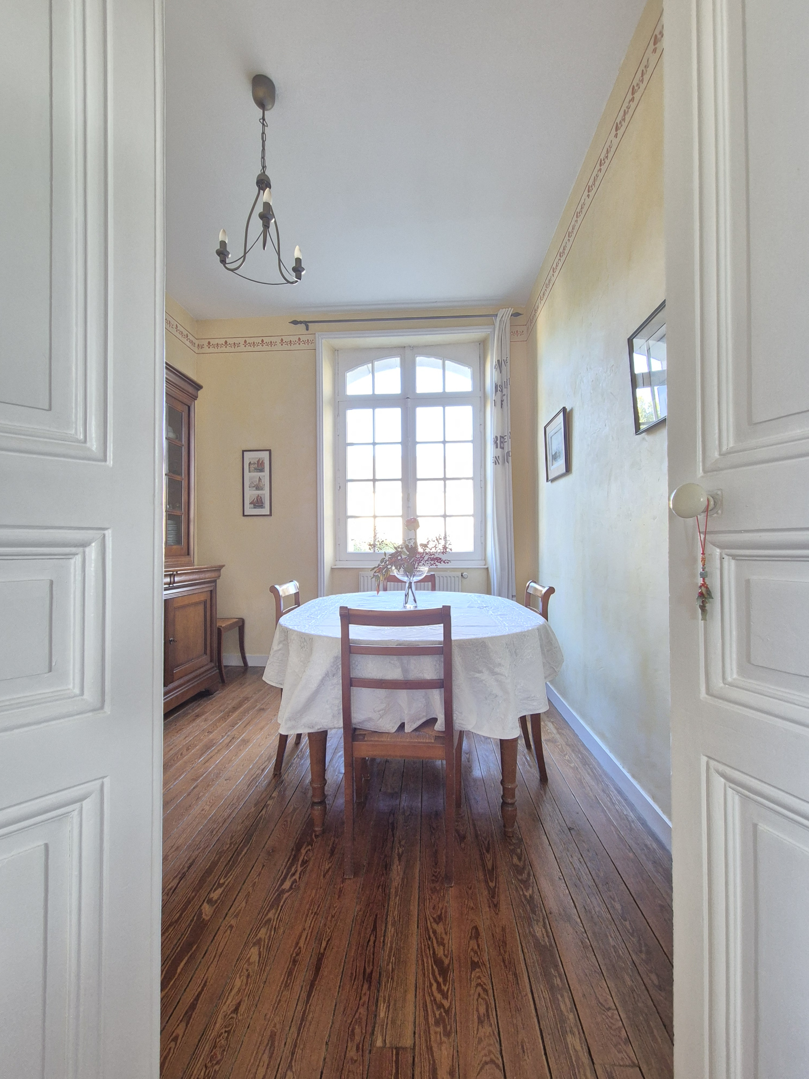 Le charme de l’ancien est omniprésent : pierre apparente, parquets, moulures, cheminées et belles hauteurs sous plafond, le tout dans un état sain et entretenu.