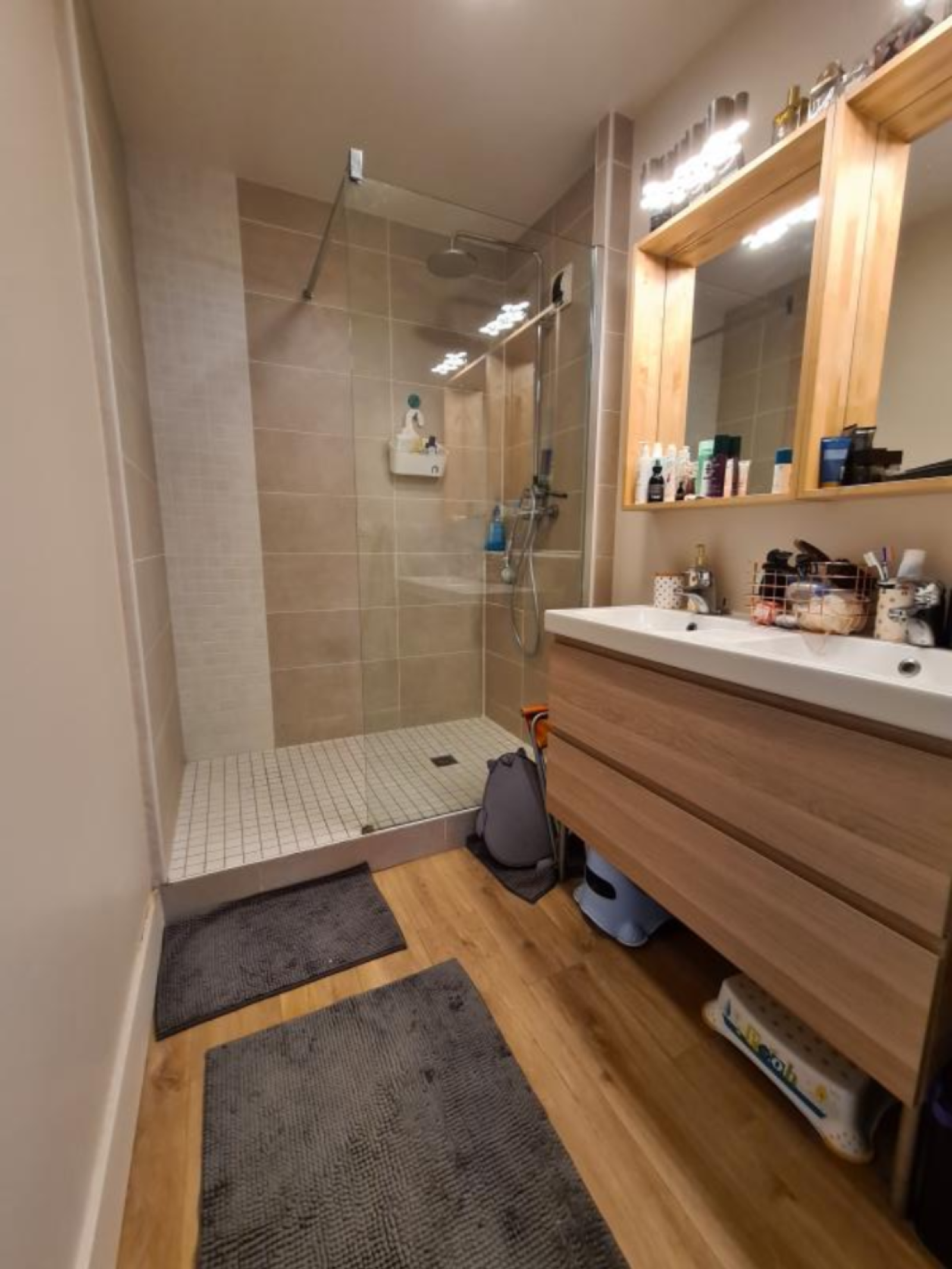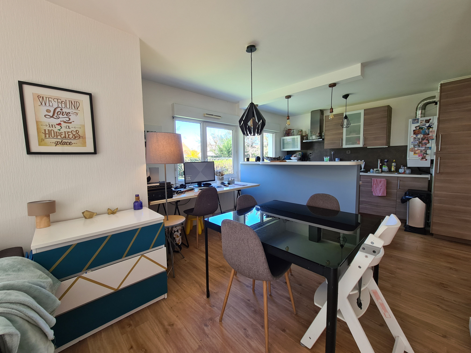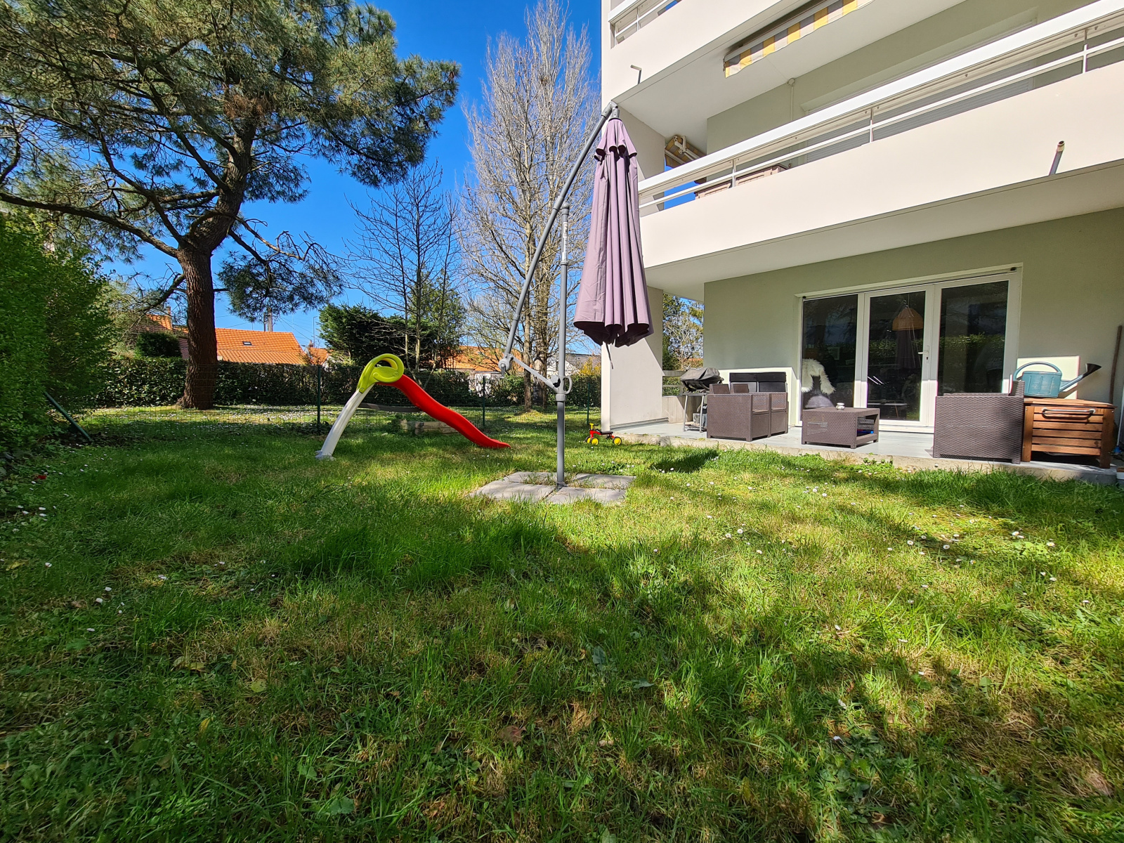 Rare à la vente, Rez-de-jardin proche du tram 8 Mai, au calme comprenant une entrée avec placard, belle pièce de vie lumineuse exposée SUD-OUEST avec cuisine A/E ouverte et donnant sur terrasse et jardin clos de 80m2, 2 chambres avec placards, salle d'eau rénovée avec douche, double vasque et sèche serviette, WC séparés.