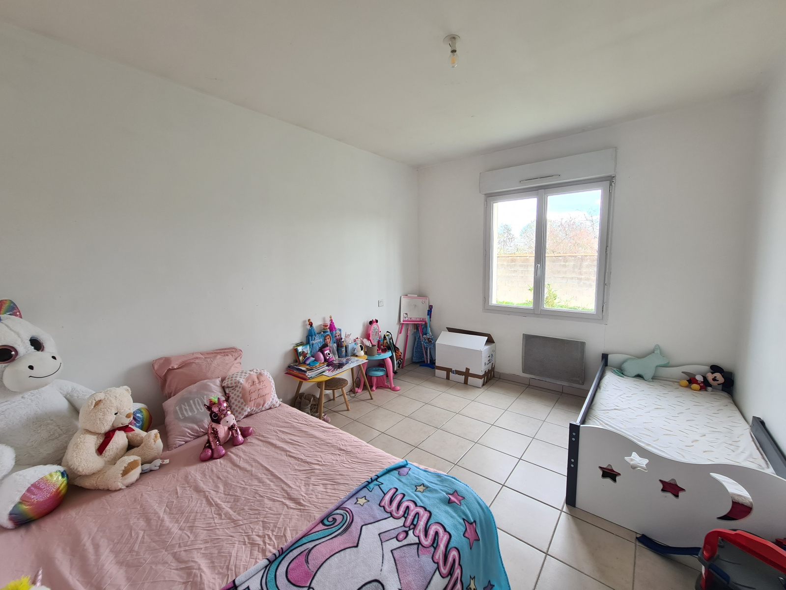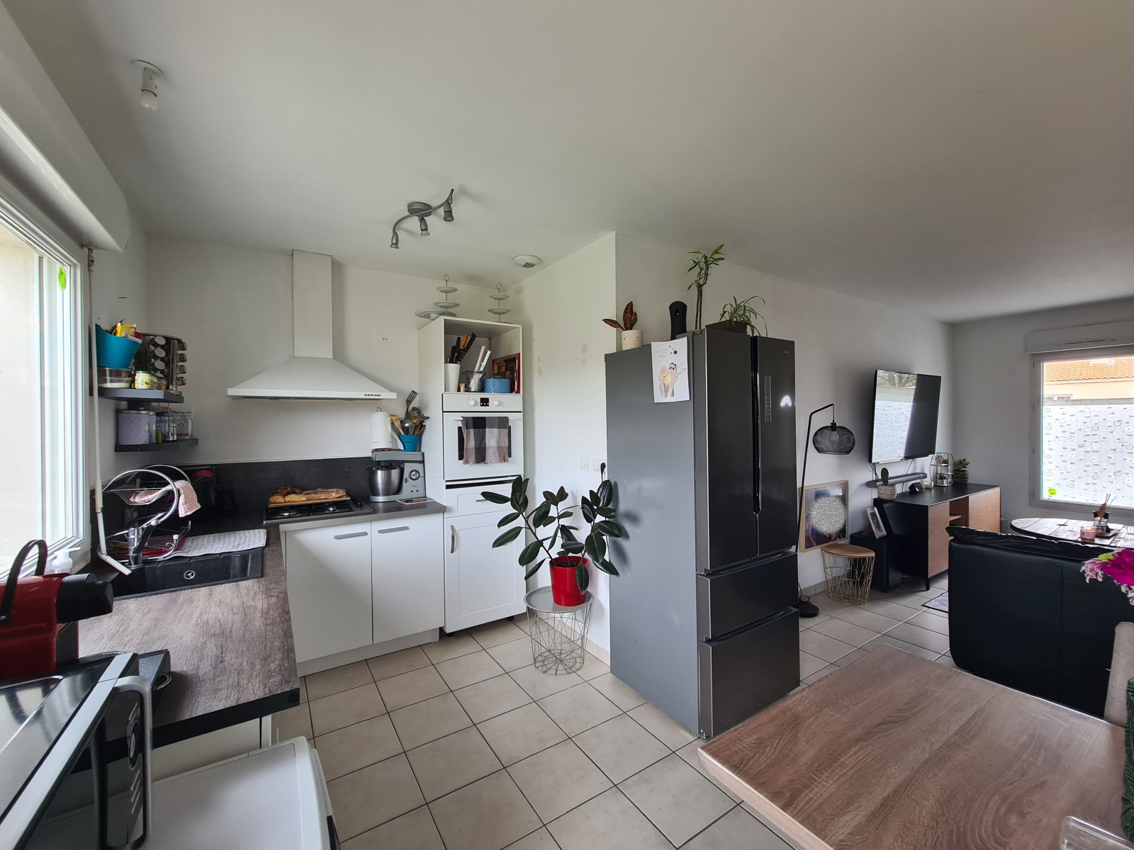 Maison de plain pied bien entretenue et mitoyenne que par le garage, Fenêtres en double vitrage, assainissement autonome et chauffage électrique.